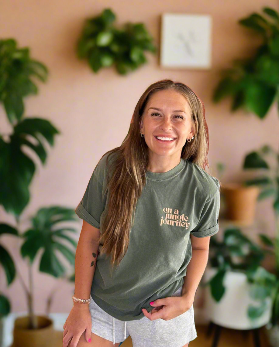 Are you on a jungle journey? If so, this is the perfect t-shirt for you! Let's take on this jungle journey together, frond. The soft puff print, makes a bold statement, while also remaining extra comfy. You know when your laundry is freshly washed and there's a certain shirt you always reach for first? Plan on having another go-to, because this is it.